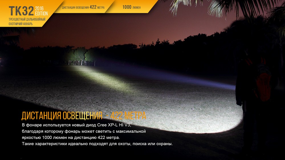 Преимуществом модели TK32 2016 является и высокий уровень защищенности от воды и грязи. Это стандарт IPX-8, в соответствии с которым фонарь полностью влагоизолирован и защищен от попадания внутрь даже мелкой пыли. Его корпус сделан из авиаалюминия, он анодированный, легкий и прочный.