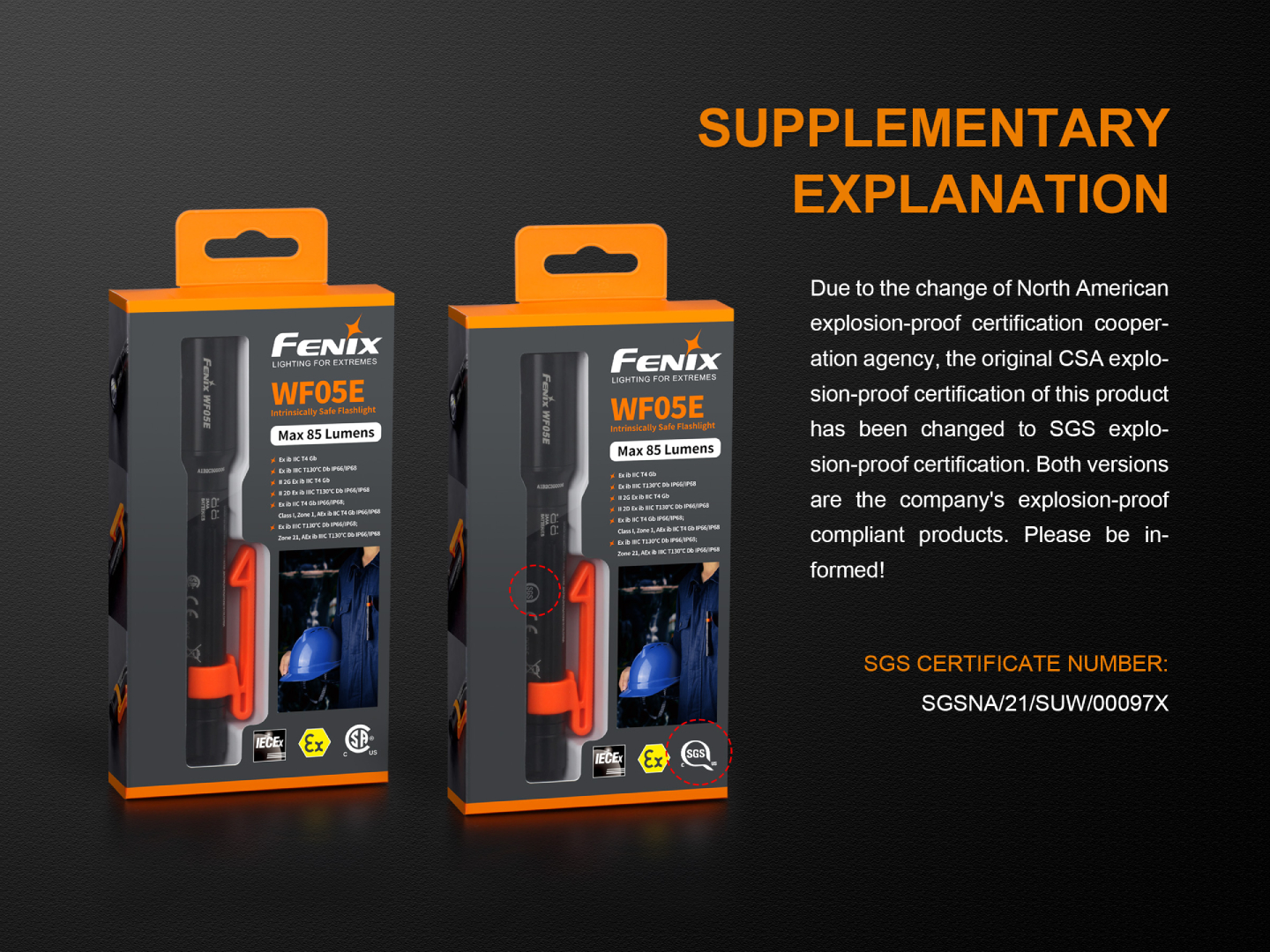 В некоторых условиях вероятность взрывов, а также пожаров выше, чем в повседневной обстановке. Это касается предприятий газодобывающей и нефтеперерабатывающей отрасли, текстильных фабрик, химических заводов. Даже самая маленькая искра в этих условиях может привести к трагедии. Фонарь Fenix WF05E сделан так, чтобы этого избежать.
