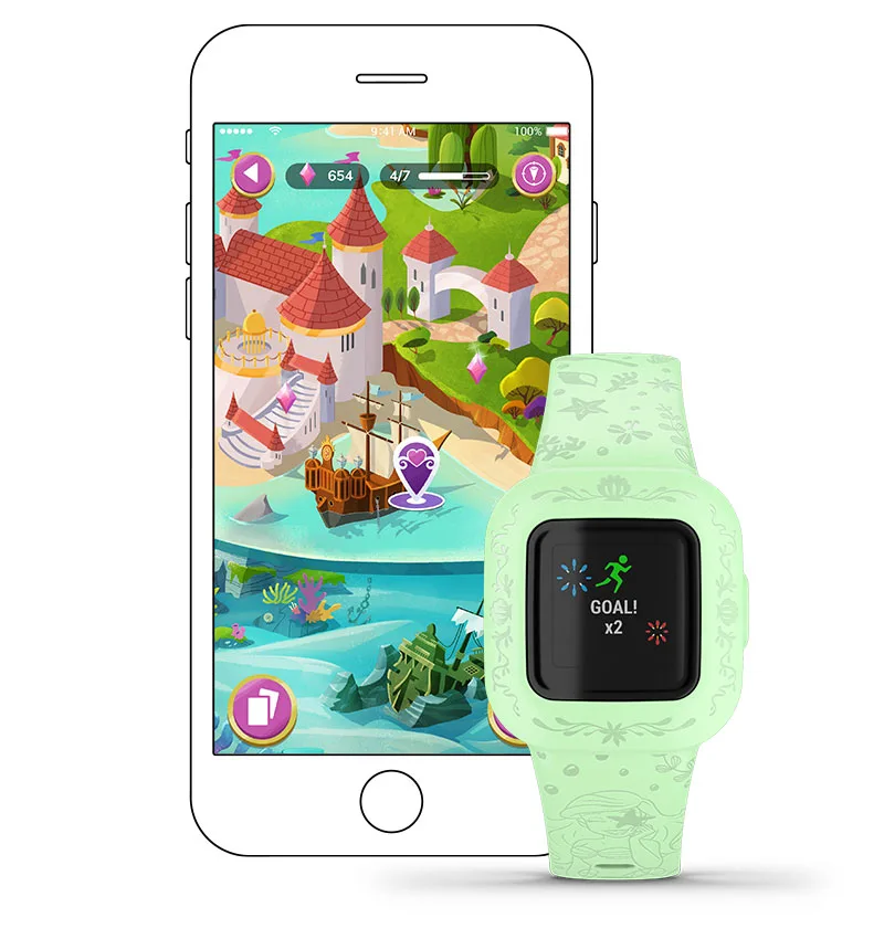Активный образ жизни полезен для каждой принцессы и каждого ребёнка. Приложение Garmin Jr.™ поощряет детей двигаться с помощью интересных фактов.